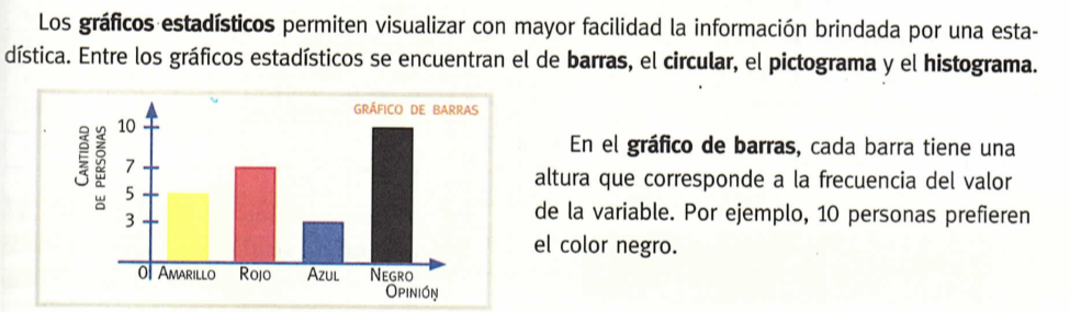- Gráficos: De barras, Histogramas, Circulares y Pictogramas